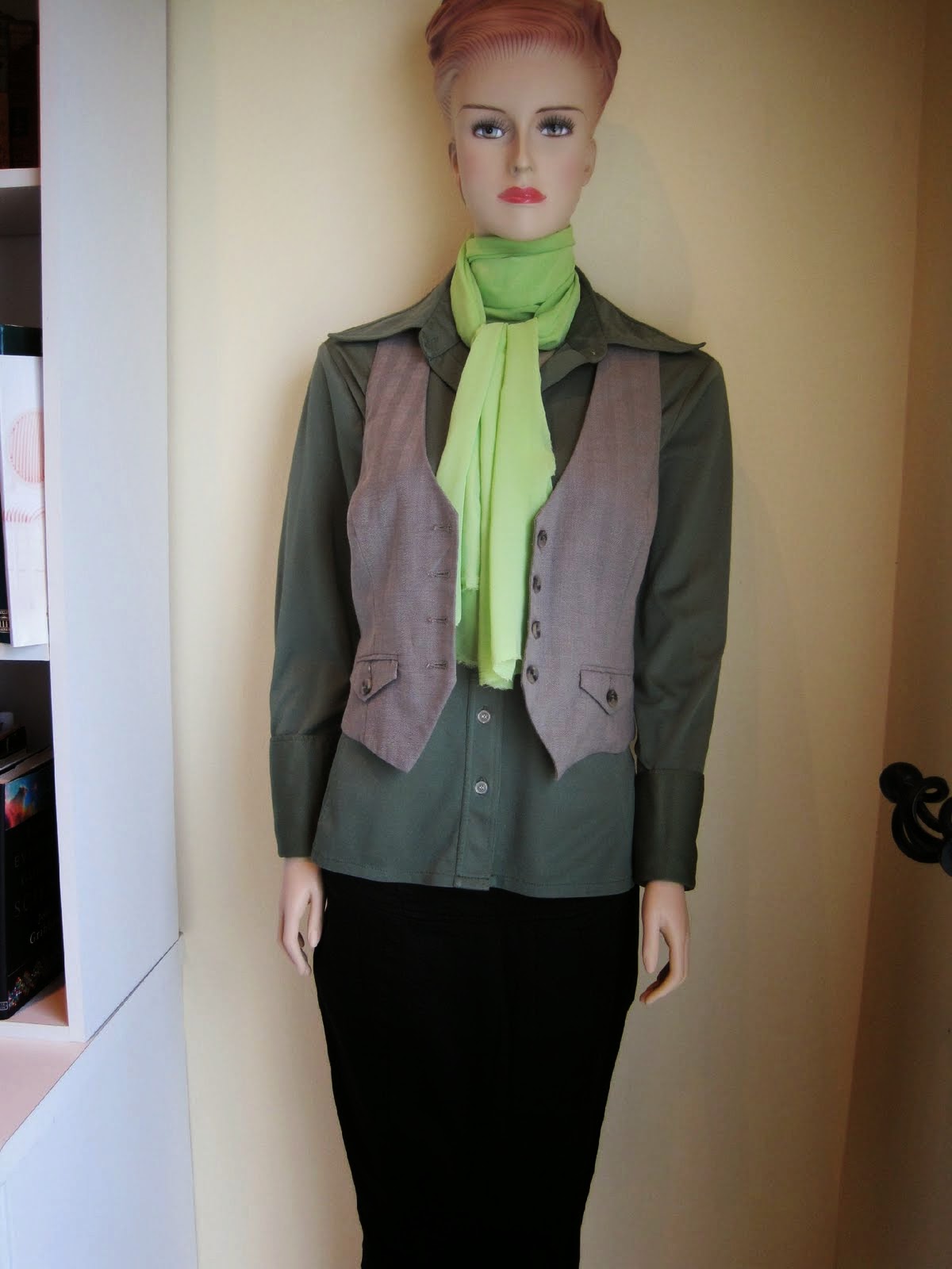 The shirt is from a vintage store. I snap these shirts up when I see them as they are wash and wear. Ideal for when I am travelling as they also dry easily and do not crease. Wish you could find shirts like this one today. One doesn’t find the same fabrics any more. They made clothes to last in those days. My vintage clothes keep their shape and wash better despite being so much older than my newer clothes. I find the cut and fit of vintage clothing is vastly superior to that of modern clothes.