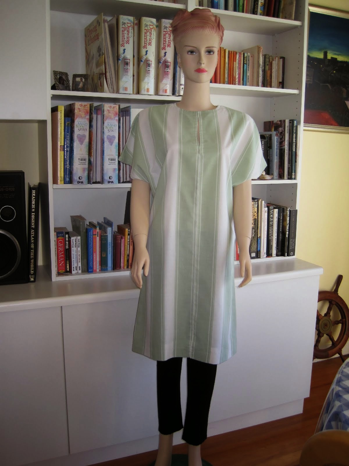 No tutorial here. Am showing some recycling I did. This shift is made from the Vogue Easy pattern shown yesterday. The fabric is, well was, a tablecloth that got stained. The nice thing about these easy shift dress patterns is that you can use most fabrics.