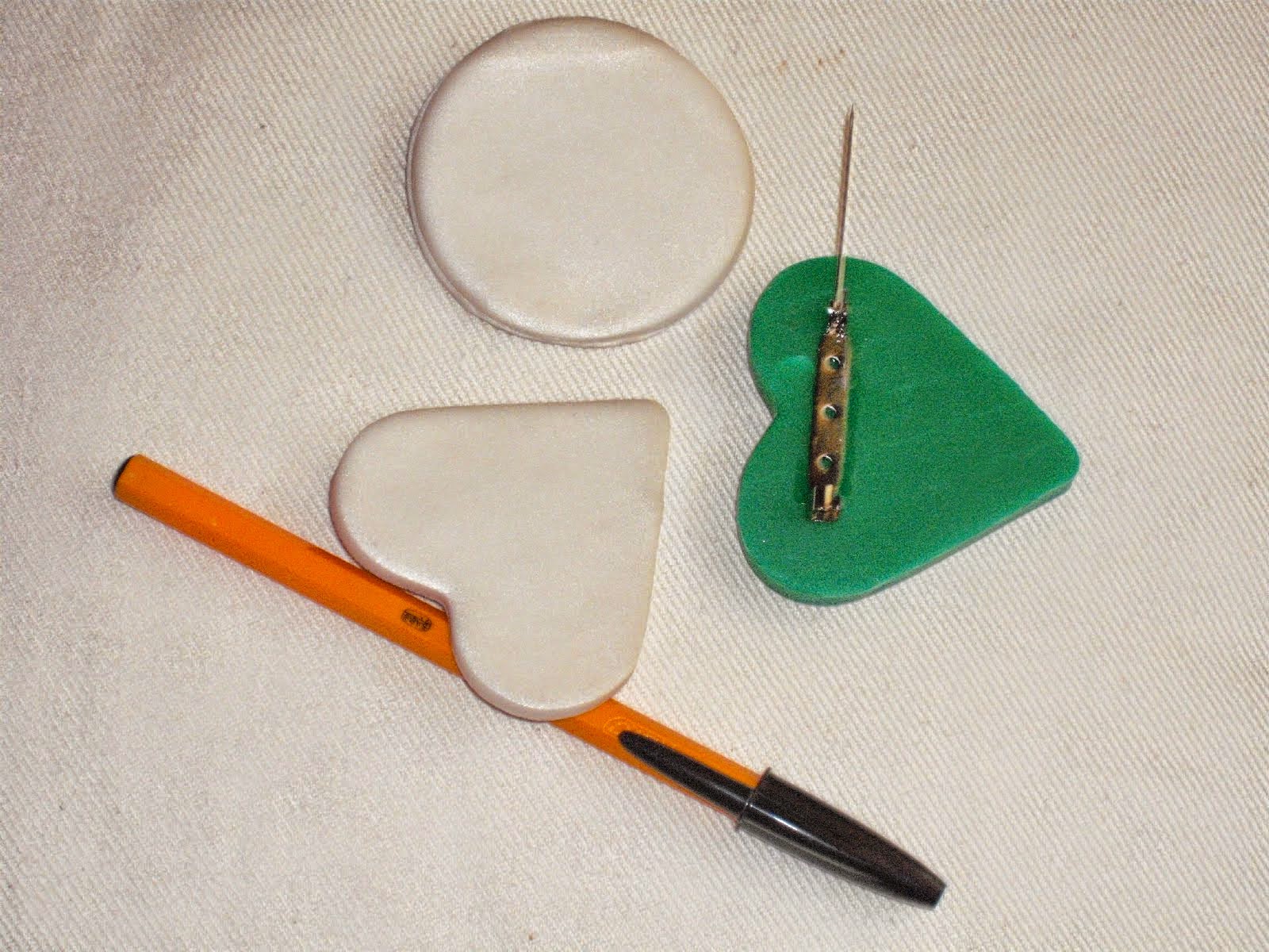 In the picture are the FIMO brooches up close. You can see the pin which I glued to the back of the brooch.