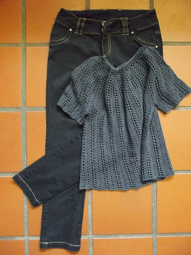 The jeans and crochet top were dyed black