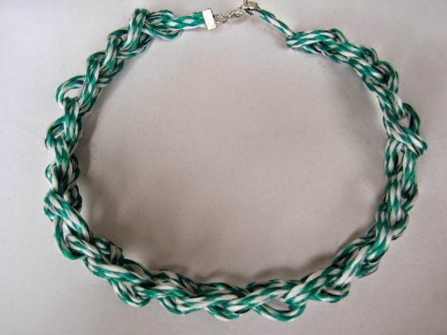 Initially I wanted to make a bracelet but the rope was a bit too thick. Instead I made this necklace. At first I thought of plaiting it or twisting it. Then it occurred to me that I could do a plain and simple crochet chain stitch with my fingers. Here’s how – how to do chain stitch.