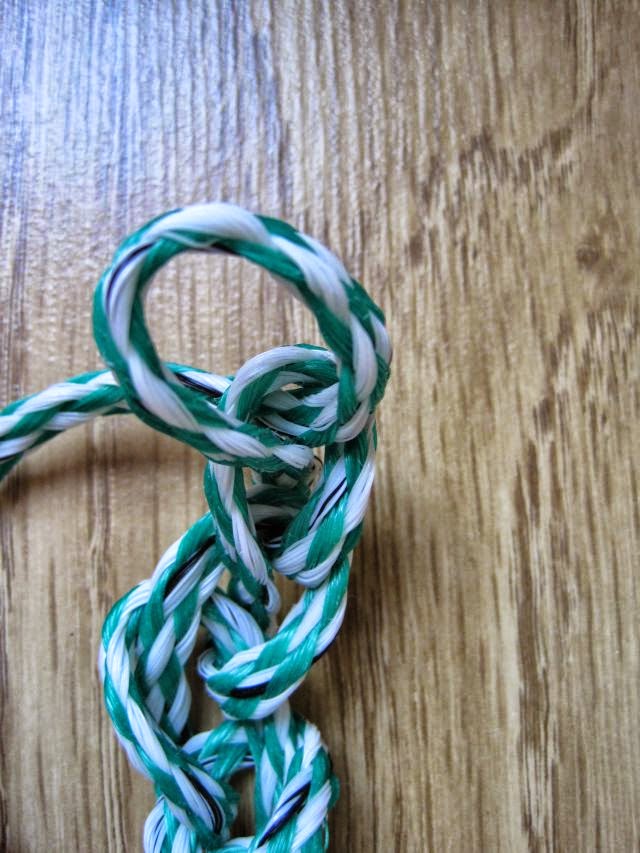 My husband had a big pile of rope lying around. This particular piece he uses for tying things to the roof-racks of his car. It’s made of plastic, is quite thick but it’s also incredibly light. It was a long piece of rope so I asked my husband if I could have just a little. He was happy for me to snip just over a metre.