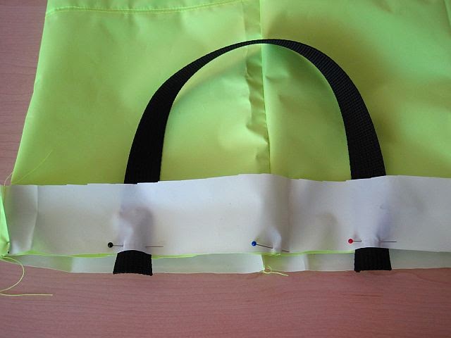 anywhere were the material would be visible after sewing. And it was slippery which made it difficult  to sew straight. But the end result was well worth it. A Super Duper bright tote bag
