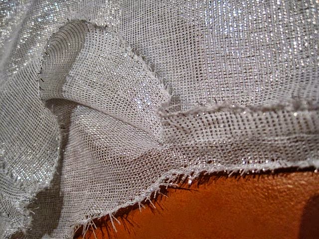 Not sure what fabric it is. I bought it in a curtaining shop. Seems to be a weave of silver lurex thread and something else.