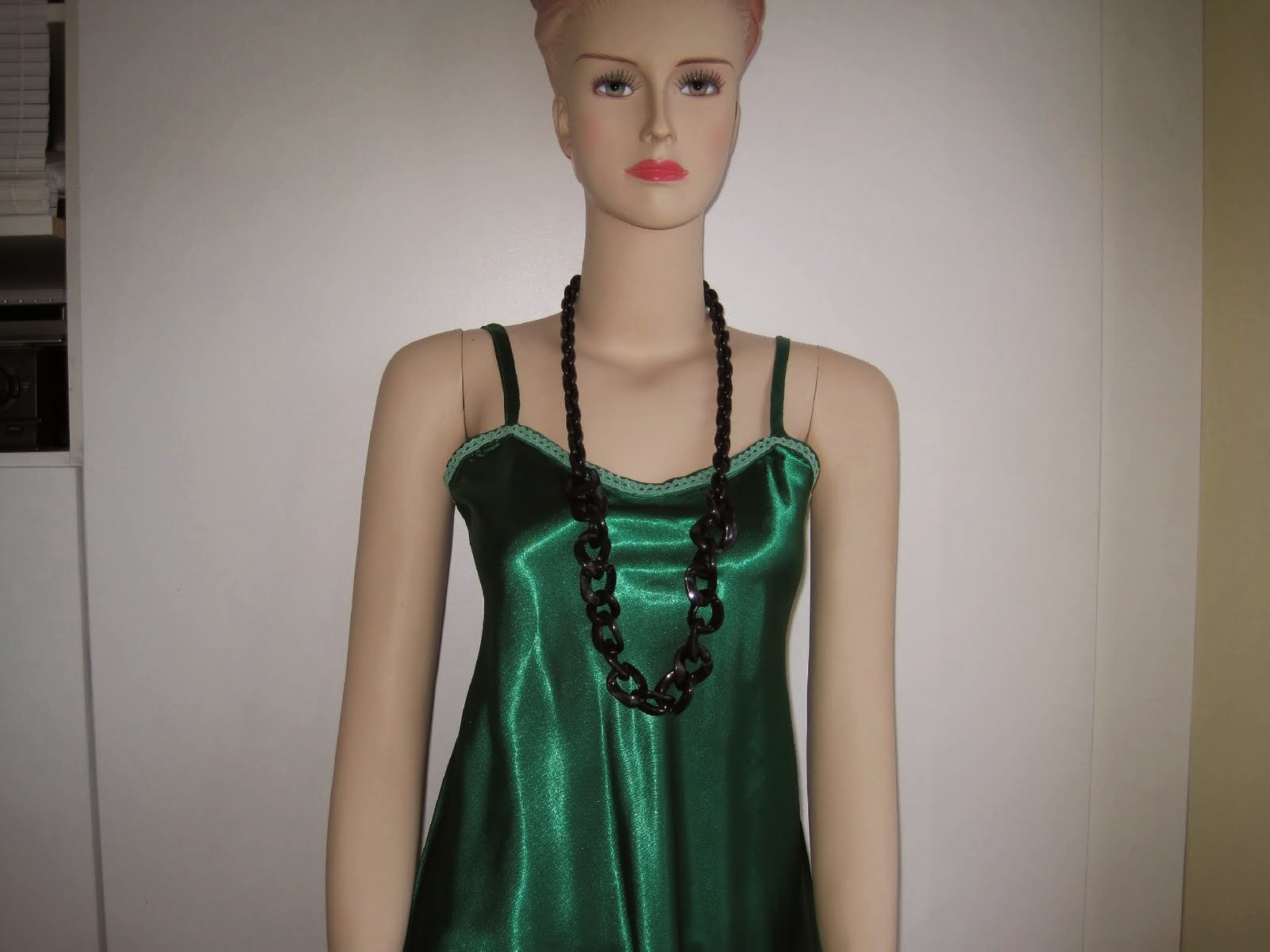 Here is my favourite slip top again in an emerald satin. I stitched a matching colour trim around the top. The instructions for this slip top appear yesterday and the day before.