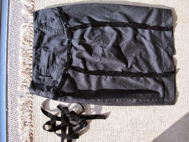 Some of the left over velvet ribbon from the Tuxedo trousers was added it to this skirt.