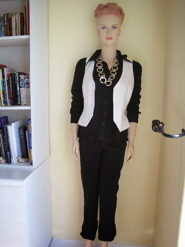 Isabel styles her pants with biker jackets, denim jackets or baseball jackets. I think you can get away with just about any jacket. For our warmer weather I would wear a waistcoat. I want to try folding up a pair of leggings to see if that will give a sleeker version of this look.