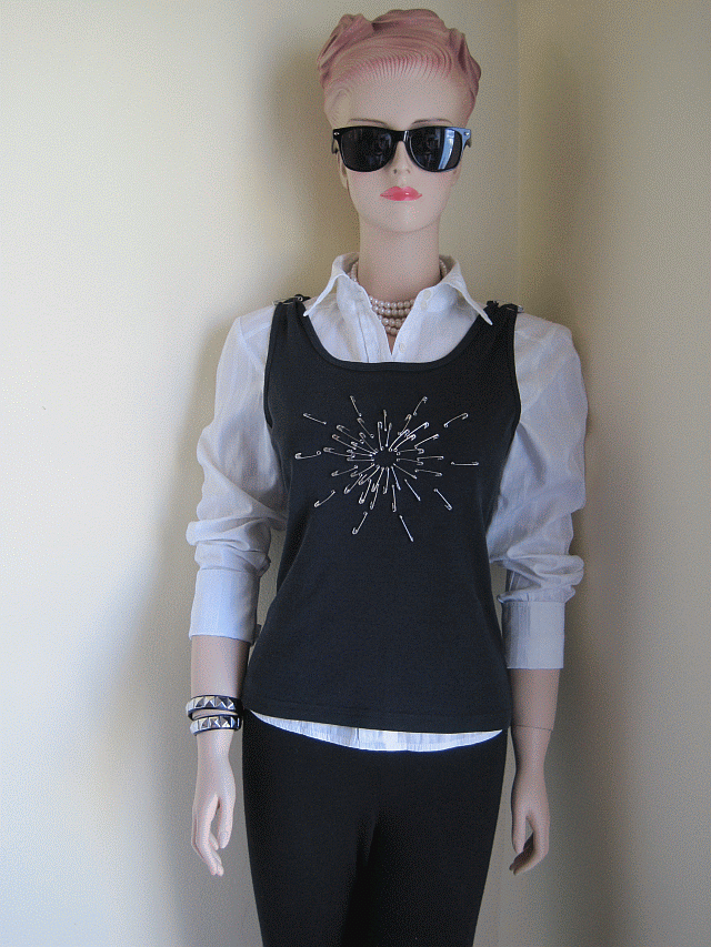 | Adding safety pins to a tank top |