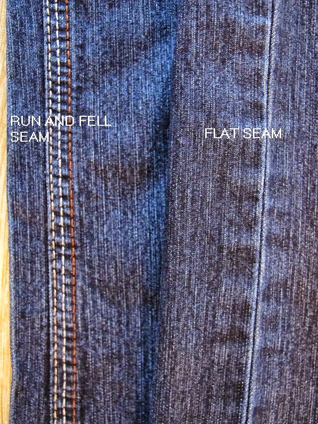 Run and fell seam on left and flat seam to right