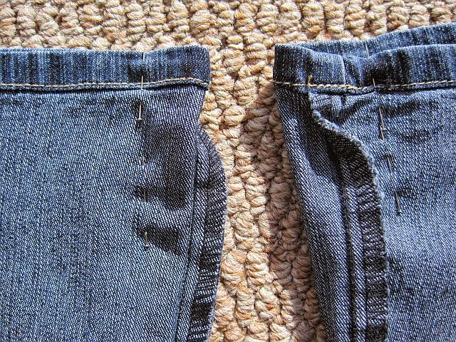 And what you can easily do, is take in the leg of wide leg or boot leg jeans. You can also easily shorten the hem of a pair of jeans.