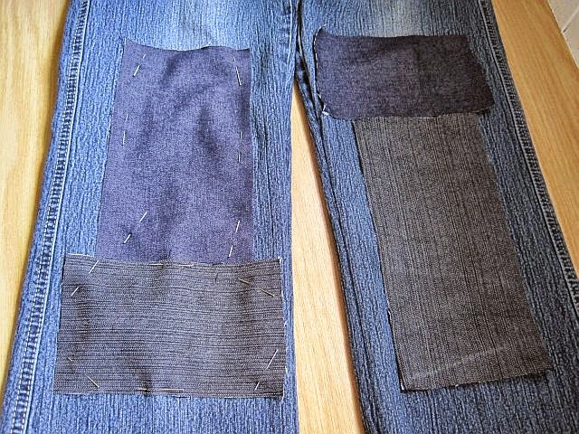 Pin and place the patches on your jeans.