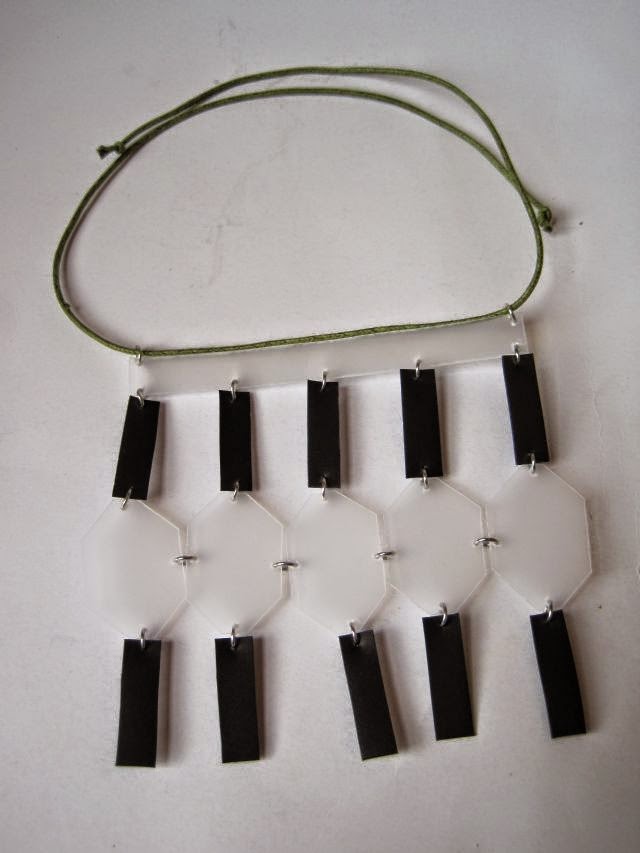 If you had a big enough piece of plastic you could make a crescent shape or even a few cascading crescent shapes. It’s up to you but next time you are about to fling out some packaging, consider that could be recycled into a necklace or a pair of earrings. I will show how to make matching earrings a future post