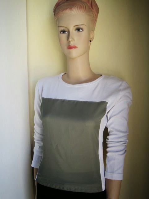 Pin the contrast colour fabric onto your top. I stitched the top first and then stitched the sides. Somehow it makes it easier to get the corners neater. Hem the lower edge and your panelled top is complete.