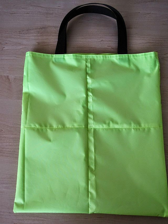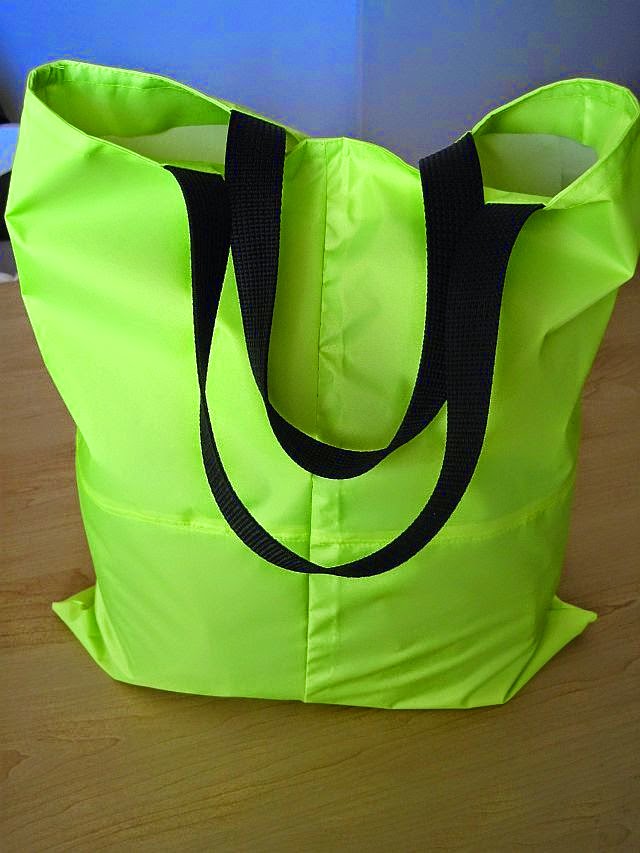 anywhere were the material would be visible after sewing. And it was slippery which made it difficult  to sew straight. But the end result was well worth it. A Super Duper bright tote bag