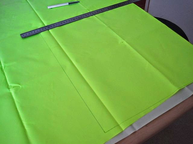 Even the fabric shops had a dearth of neon coloured fabric. All I could find was this dinkum, genuine High Visibility material. It’s a sort of vinyl substance with real glow in the dark pigment on the front and a rubber like smooth finish on the reverse side.