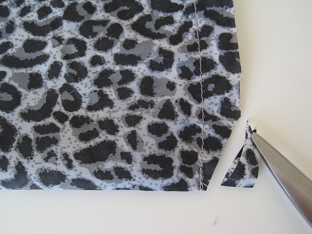 Sew sides leaving 6 centimetres open at the top. Snip corners at bottom so pouch opens nicely.